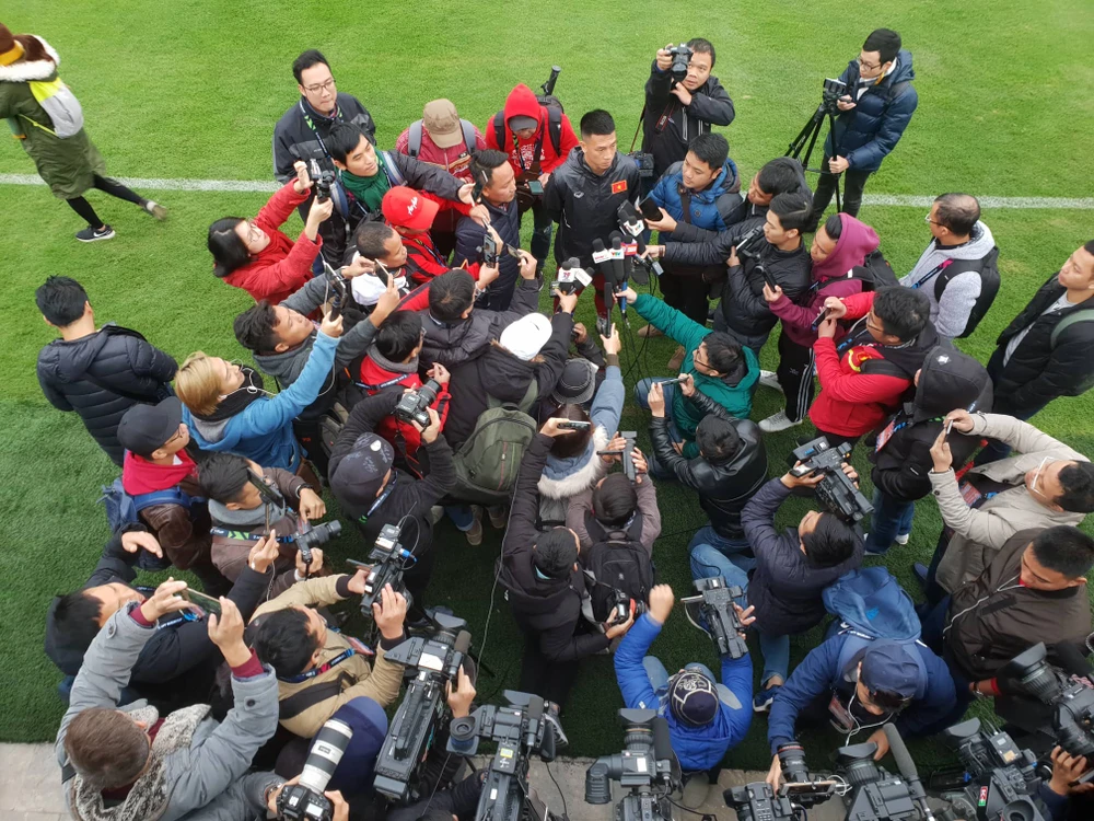Đông đảo phóng viên quan tâm đến mọi diễn biến của đội tuyển Việt Nam từ sân tập đến các trận đấu ở AFF Cup 2018.