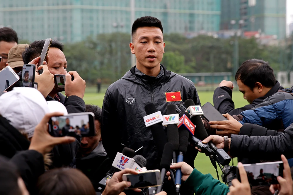 Có rất đông giới truyền thông và người hâm mộ chờ đón đội tuyển ra sân tập sau trận hòa chung kết lượt đi 2-2 trên sân khách Bukit Jalil. Ông Park cử tiền vệ Huy Hùng chia sẻ với mọi người về cảm giác ghi bàn trong trận chung kết.