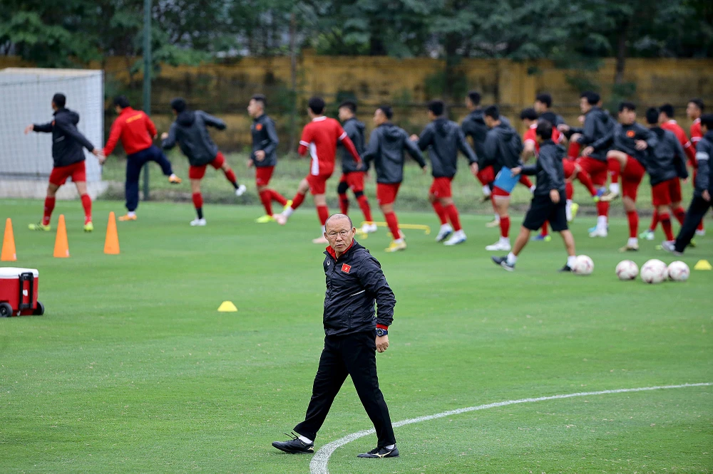 HLV Park Hang-seo theo dõi sát buổi tập của các học trò chuẩn bị cho trận chung kết lượt về AFF Cup 2018 với tham vọng vô địch sau 10 năm dài chờ đợi.