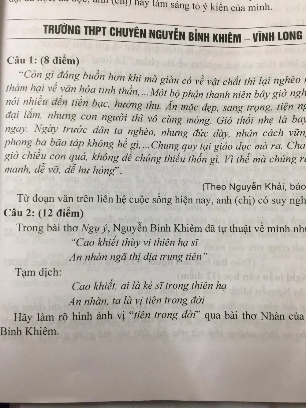 Đáng nói, theo cô, nội dung phần 2 của đề ngữ văn lớp 8 được lấy nguyên văn nội dung trong bộ đề thi chuyên văn Olympic 30/4 hằng năm dành cho học sinh giỏi văn từ lớp 10 trở lên. Trong khi các em thi học kỳ đề này mới là HS lớp 8 thì làm sao các em làm. Hơn nữa, đây là dạng đề nghị luận nhưng nguyên trong học kỳ 1, các em không học về nghị luận tư tưởng, đạo lý hay đời sống gì cả.