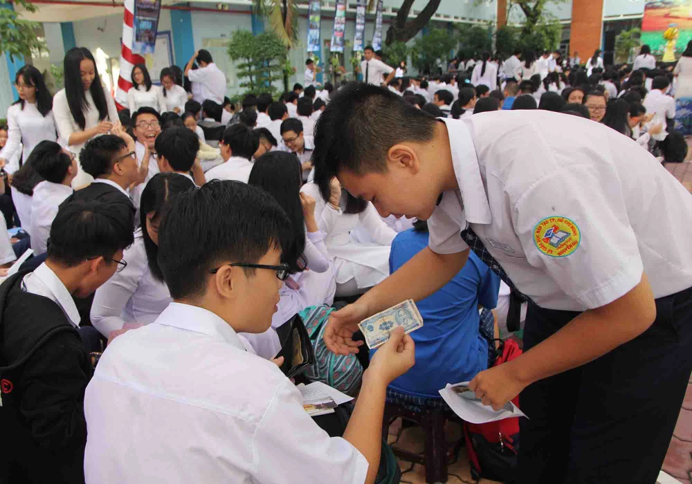 Học sinh Trường THPT Nguyễn Du quyên góp ủng hộ quỹ "Vì Trường Sa thân yêu".