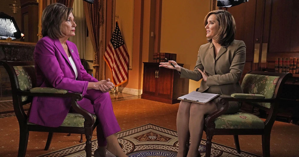 Chủ tịch Hạ viện Nancy Pelosi (bên trái) xuất hiện trong chương trình Face the Nation của đài CBS ngày 17-11. Ảnh: CBS