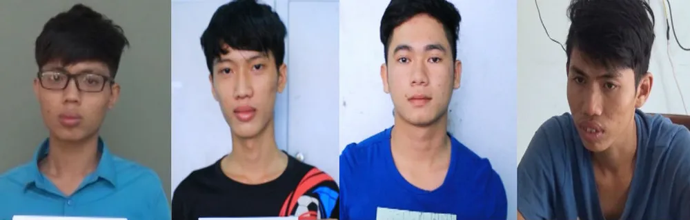 Các nghi can được xác định gồm: Đinh Quan Châu (23 tuổi, ngụ Tây Ninh), Lâm Hồ Bình (21 tuổi), Phạm Đình An và Nguyễn Minh Thanh (cùng 19 tuổi, cùng ngụ Bình Dương).