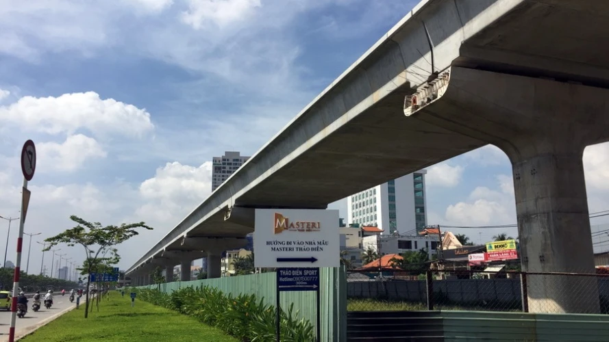 Lao lắp dầm trên tuyến metro số 1.