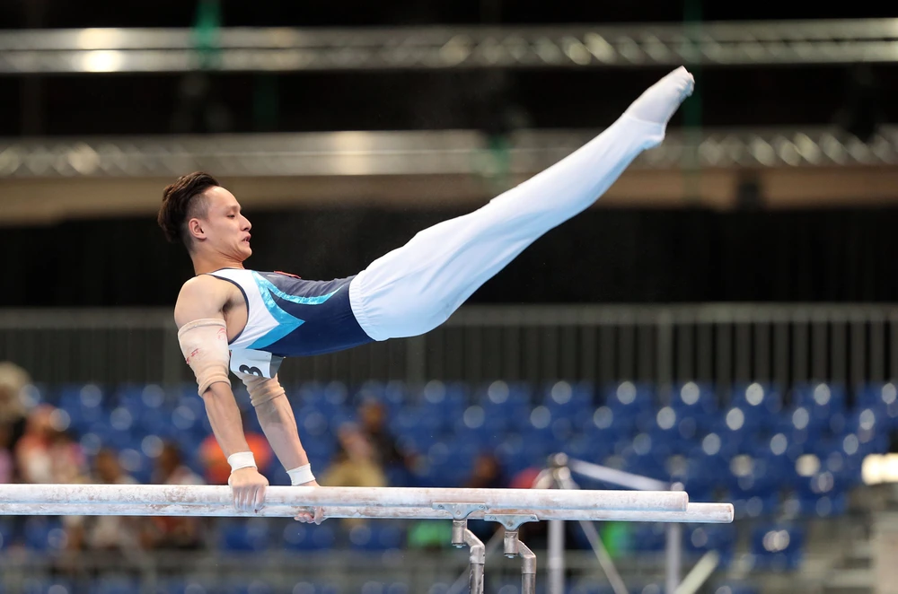 Đinh Phương Thành trở thành nhà vô địch nội dung xà kép tại SEA Games 29. Ảnh: PHẠM HUY