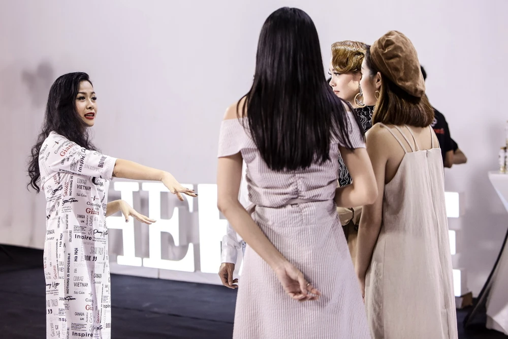Giám khảo Trần Uyên Phương trực tiếp hướng dẫn các thí sinh và HLV từng đội thực hiện TVC.