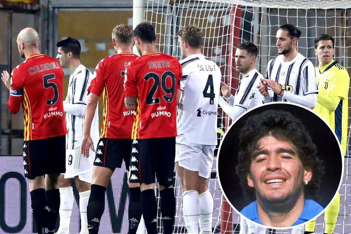 Trận đấu giữa Juventus và Benevento dừng lại ở phút thứ 10 để cầu thủ hai đội vỗ tay vinh danh Maradona. Ảnh: TS