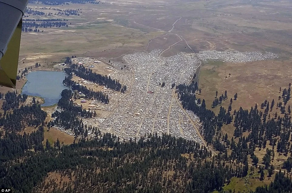 Có hơn 30.000 người đổ xô về lễ hội Oregon Eclipse Burning Man, thuộc rừng quốc gia Ochoco của bang Oregon. Ảnh: AP