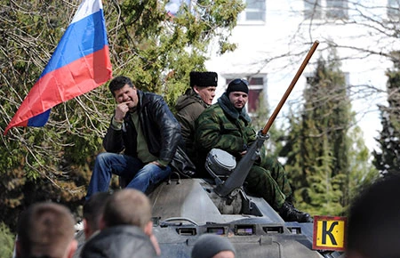 Cờ Nga được treo tại cơ sở quân sự ở Crimea.