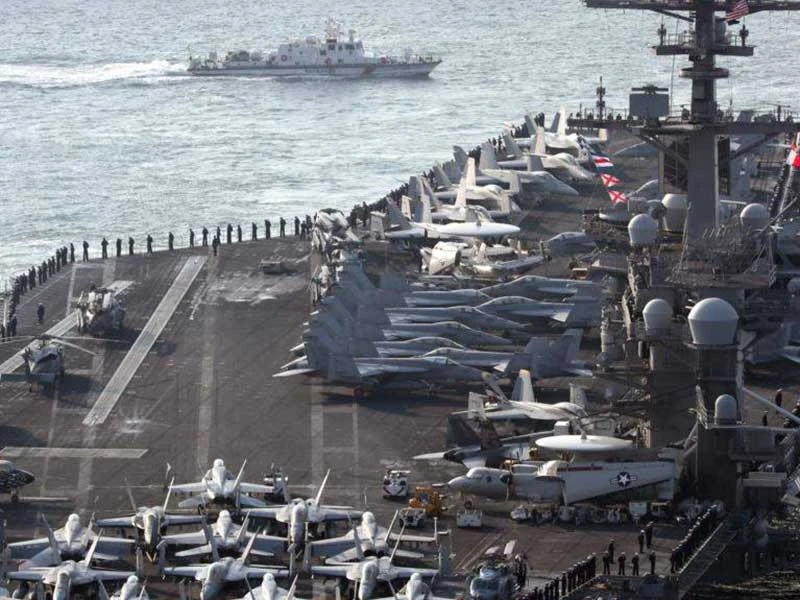 Tàu sân bay USS Carl Vinson của Mỹ dẫn đầu một đội tàu tấn công tiến về bán đảo Triều Tiên. Ảnh: YONHAP