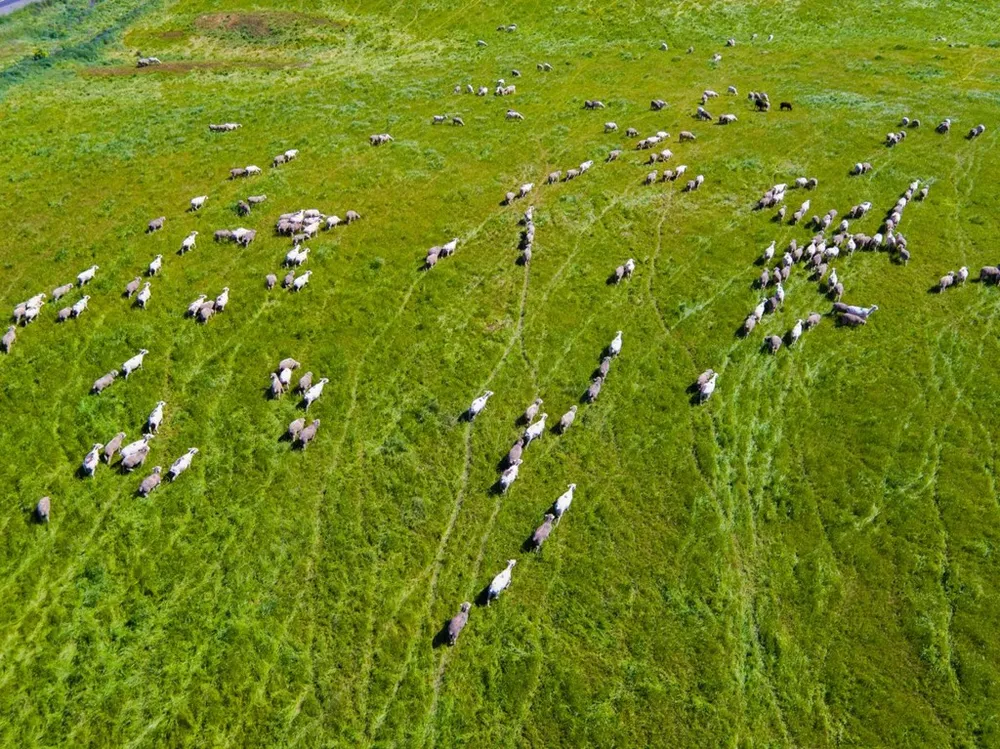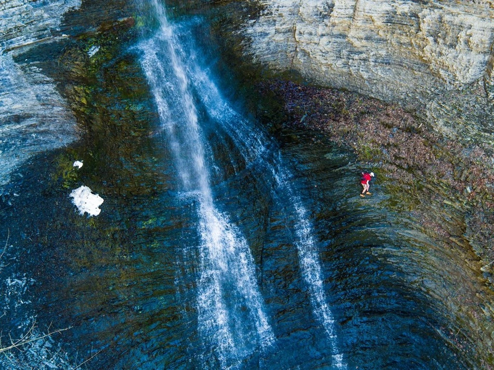 Con người nhỏ bé trong khung cảnh thiên nhiên rộng lớn nhìn từ flycam của Guttman.