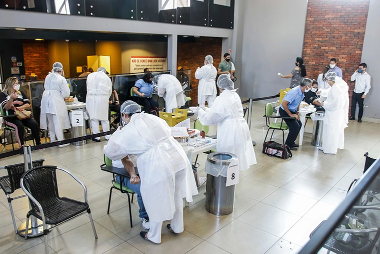 Nhân viên y tế Brazil đang lấy máu xét nghiệm COVID-19 cho người dân. Ảnh: AP/CNN