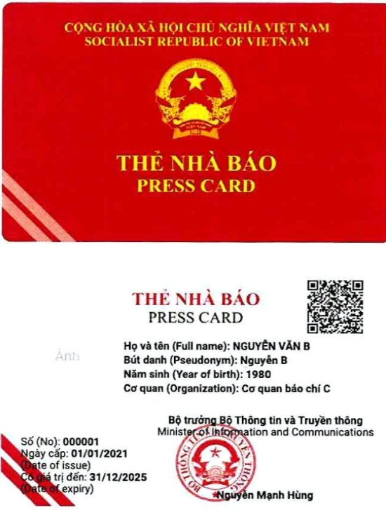 Mẫu thẻ nhà báo kỳ hạn 2021-2025