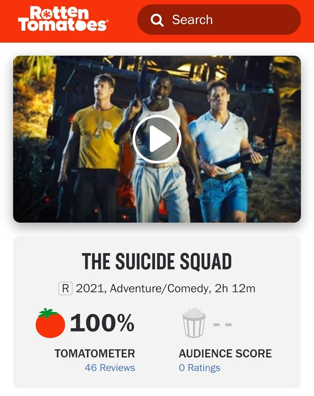 The Suicide Squad mở điểm trên chuyên trang đánh giá Rotten Tomatoes với 100% cà chua tươi