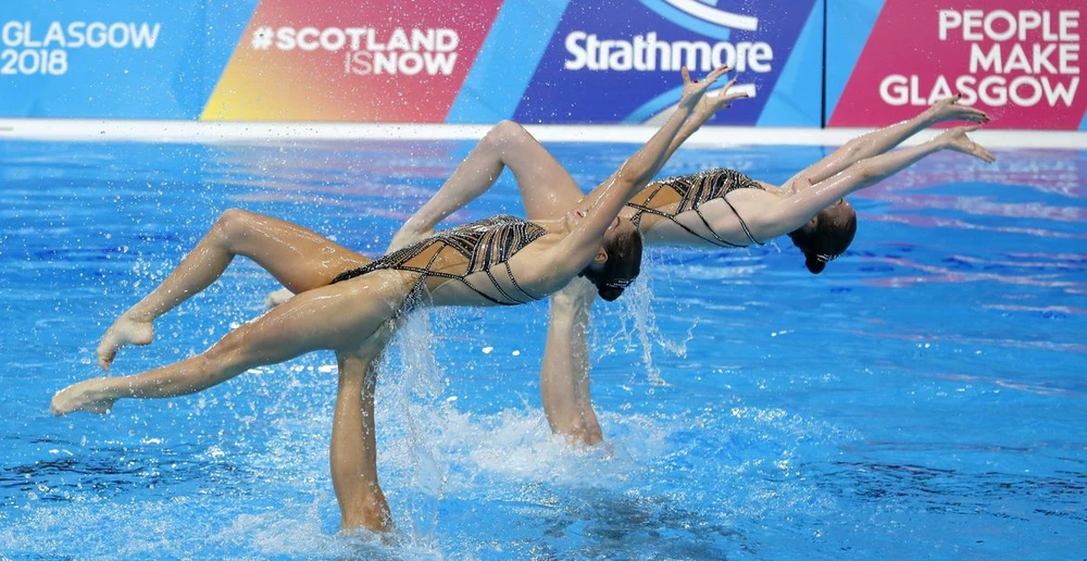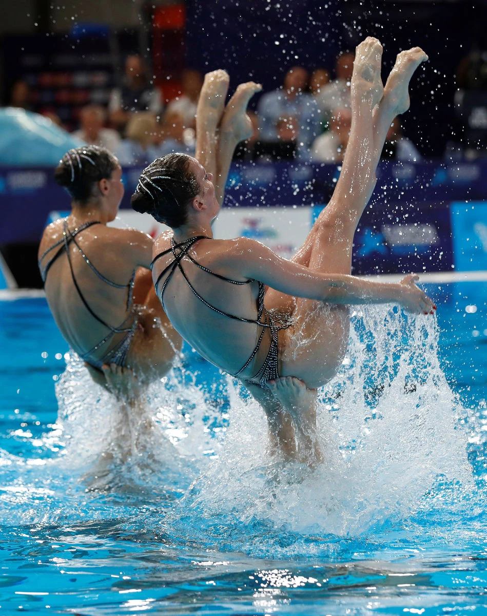 Hai VĐV Nga biểu diễn nội dung đôi bơi nghệ thuật.