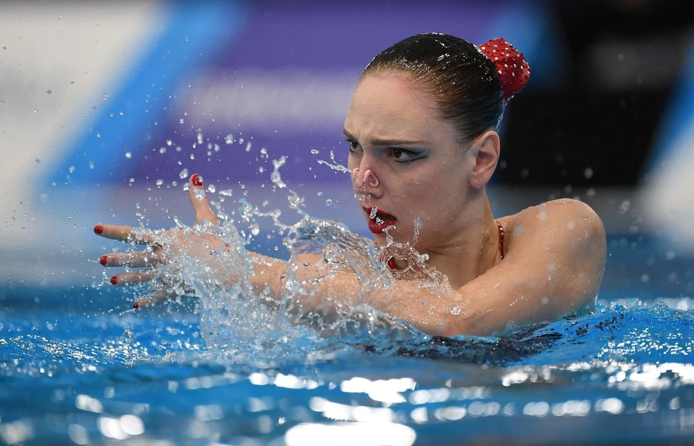 Một VĐV bơi nghệ thuật Nga chuẩn bị bài thi.