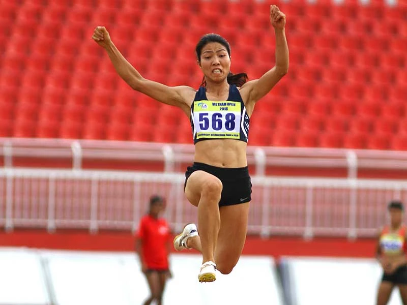 Bùi Thị Thu Thảo, người thực hiện cú nhảy lịch sử đưa điền kinh Việt Nam đoạt HCV châu Á. Ảnh: CMQ
