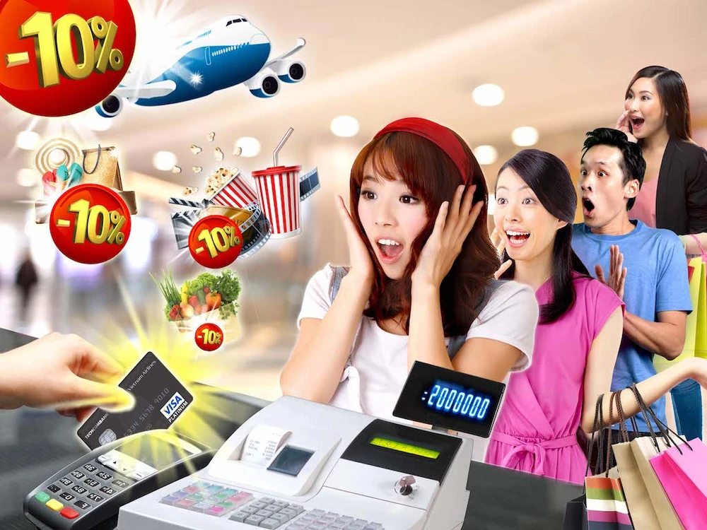 Đơn cử như tại Vietcombank vừa triển khai ưu đãi lớn nhất trong năm 2019 ở tất cả nhóm lĩnh vực như hàng không, mua sắm, e-commerce, mỹ phẩm, giải trí... qua chương trình “Thứ 6 bùng nổ”.