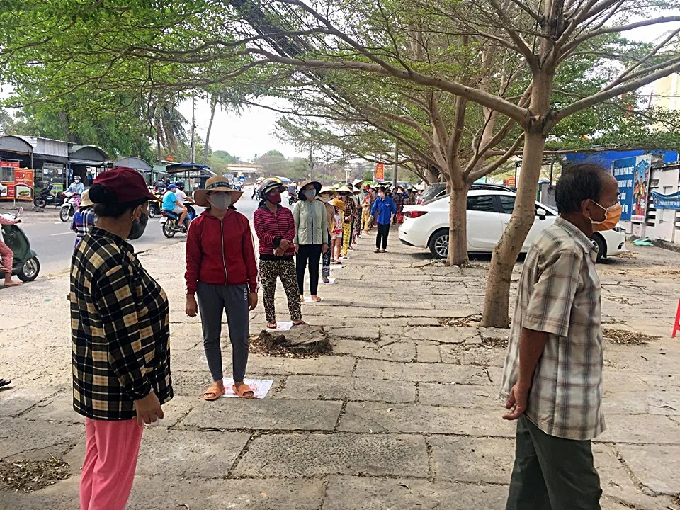 Hàng trăm người nghèo sáng nay đã đến xếp hàng trong trật tự để nhận gạo miễn phí và cho biết vô cùng xúc động và hạnh phúc.