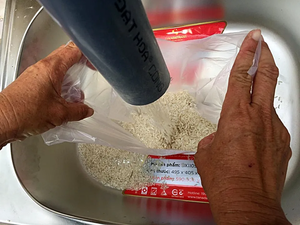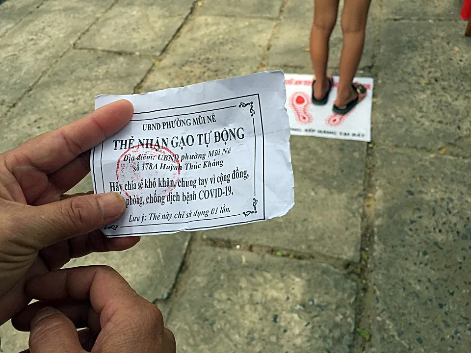 Máy được lắp đặt trước trụ sở UBND phường và mỗi ngày hoạt động từ 8 giờ đến 11 giờ sáng; buổi chiều từ 13 giờ 30 đến 17 giờ. Mỗi người dân sẽ đến nhà trưởng khu phố lấy thẻ nhận gạo đến xếp hàng cách nhau 2 m, sau đó rửa tay bằng nước sát khuẩn, bấm nút nhận 1,5 kg gạo và mỗi người được nhận một thẻ/ngày.