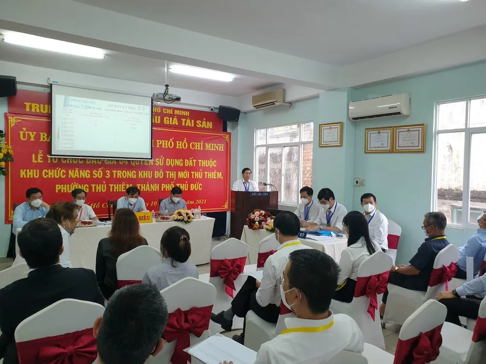 Phiên đấu giá vào ngày 10-12-2021, Trung tâm đấu giá tài sản TP.HCM hoàn tất cả 4 phiên đấu giá với 4 lô đất thuộc khu chức năng số 3, khu đô thị mới Thủ Thiêm. (Ảnh: QH)