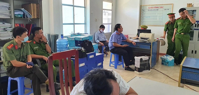 Cơ quan CSĐT Công an tỉnh Phú Yên khám xét nơi làm việc của một bị can tại Sở TN&MT Phú Yên. Ảnh: TẤN LỘC