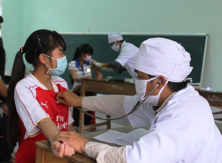 Tiêm thuốc phòng bệnh cho học sinh ở Trường THPT Tây Giang trước đó. Ảnh: CTV