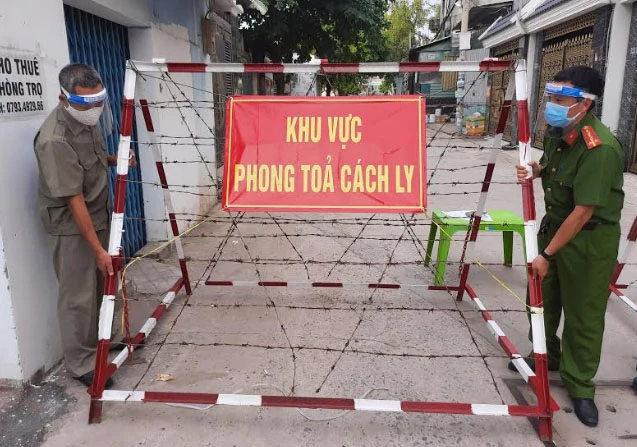 Phong tỏa một điểm có ca nhiễm SARS-CoV-2 ở phường Hiệp Thành, quận 12. Ảnh: TRẦN NGỌC