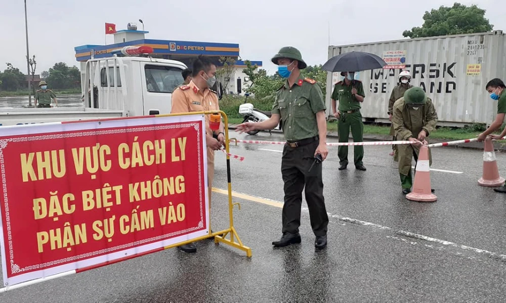 Đúng 12 giờ trưa 12-6, lực lượng chức năng đã lập chốt phong tỏa tạm thời thị trấn Lộc Hà và xã Thạch Kim (huyện Lộc Hà, Hà Tĩnh).