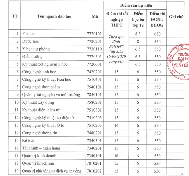 Tương tự, Trường ĐH Nguyễn Tất Thành cũng vừa chính thức công bố điểm sàn dự kiến xét tuyển bằng kết quả kỳ thi tốt nghiệp THPT 2020 cho 44 ngành đào tạo bậc đại học.