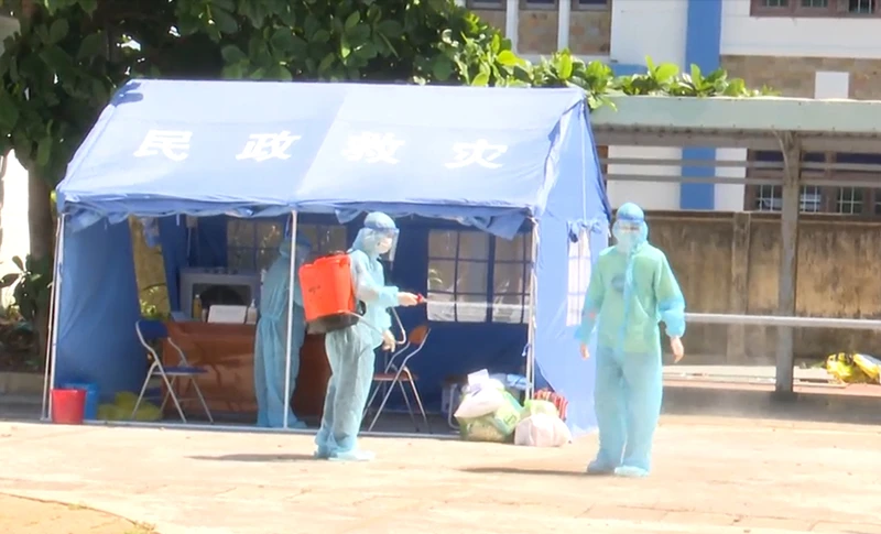 Khử khuẩn ở khu cách ly tập trung. Ảnh: VŨ XUÂN