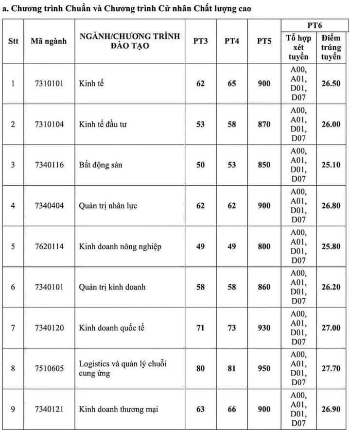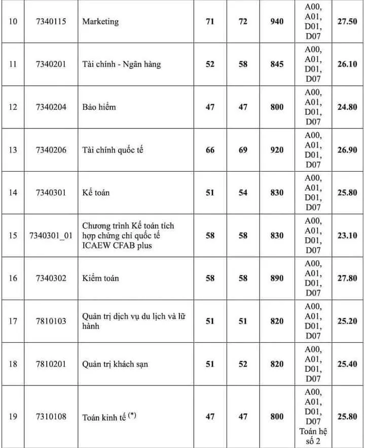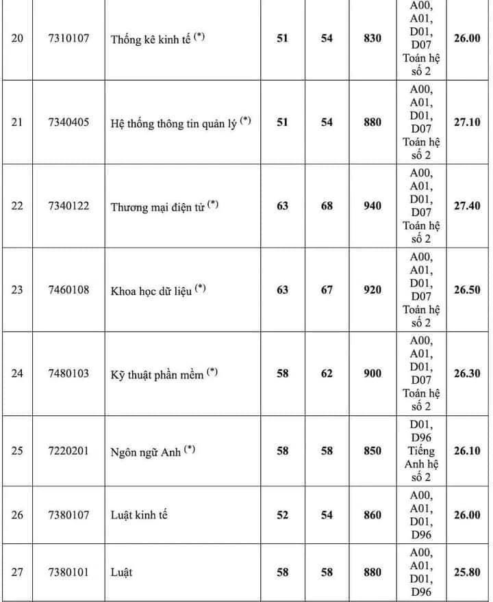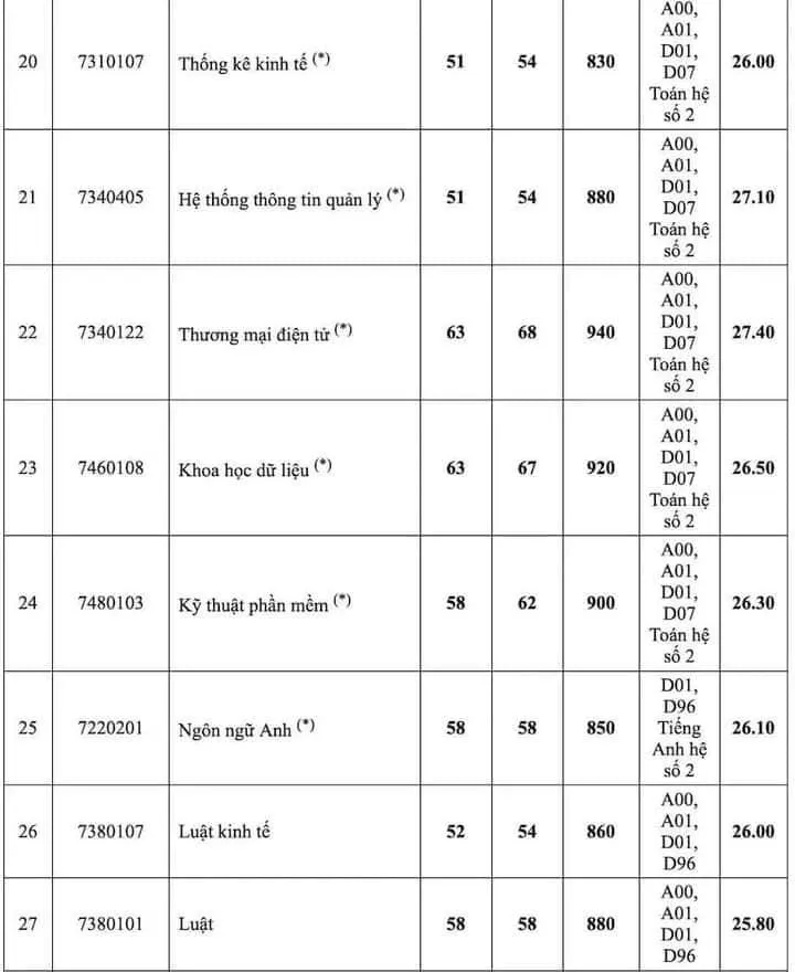 Đặc biệt, kết quả tuyển sinh còn cho thấy xu hướng lựa chọn các ngành học liên quan đến khoa học, công nghệ, đổi mới sáng tạo và thiết kế ngày càng thu hút nhiều thí sinh đăng ký, khiến cho điểm chuẩn của các ngành học này tăng khá cao. Một số ngành trên 27 điểm như hệ thống thông tin quản lý, Kiểm toán, Thương mại điện tử, Marketing, Logistic và quản lý chuỗi cung ứng…
