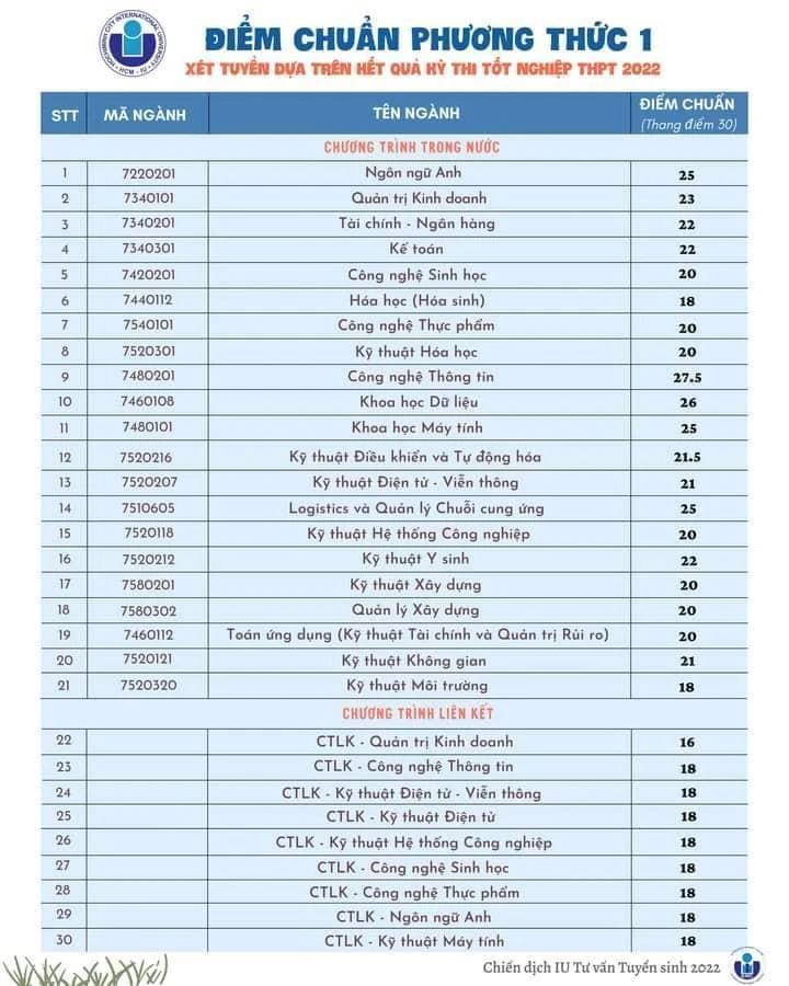 Tương tự, trường ĐH Quốc tế (ĐH Quốc gia TP.HCM) cũng có mức điểm chuẩn chỉ từ 18 điểm trở lên. Hai ngành cao điểm nhất là Công nghệ thông tin với 27,5 điểm, ngành Khoa học dữ liệu 26 điểm.