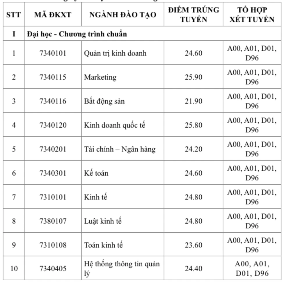 Điểm chuẩn các ngành của Trường Đại học Kinh tế TP.HCM |