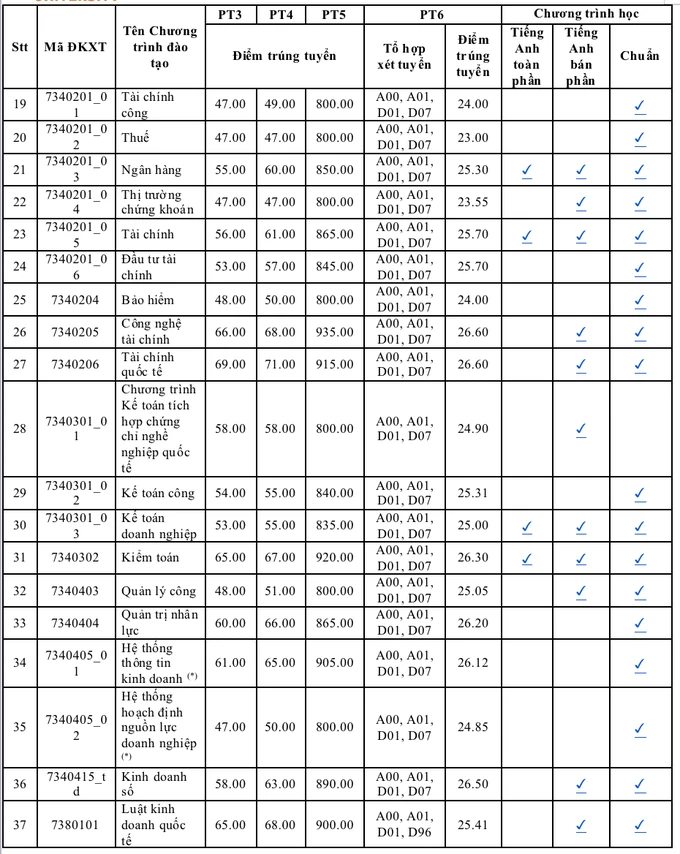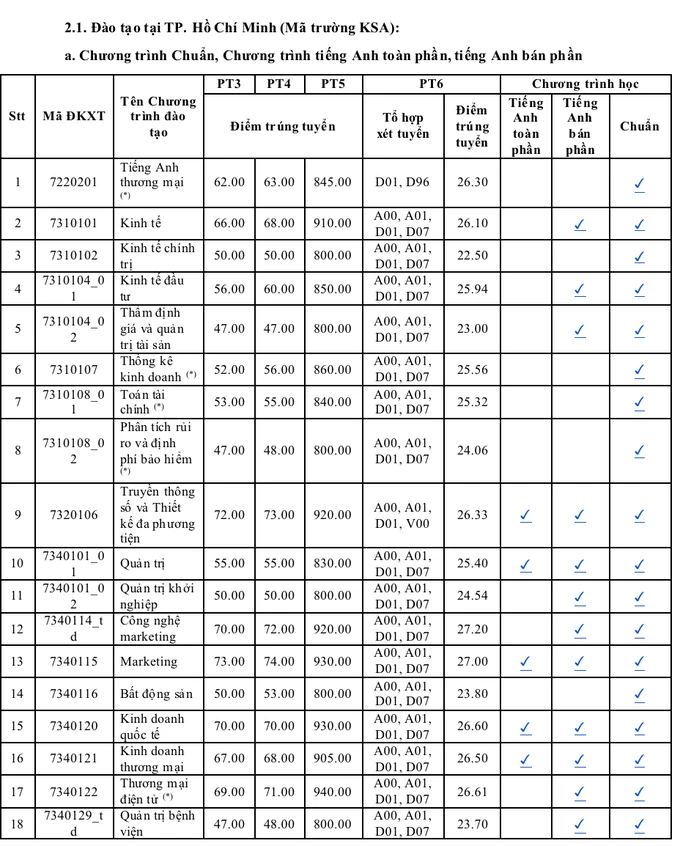 Tương tự, Trường Đại học Kinh tế TP.HCM cũng vừa công bố điểm trúng tuyển. Theo đó, điểm chuẩn năm nay ở mức từ 22.49 - 27.2 điểm.