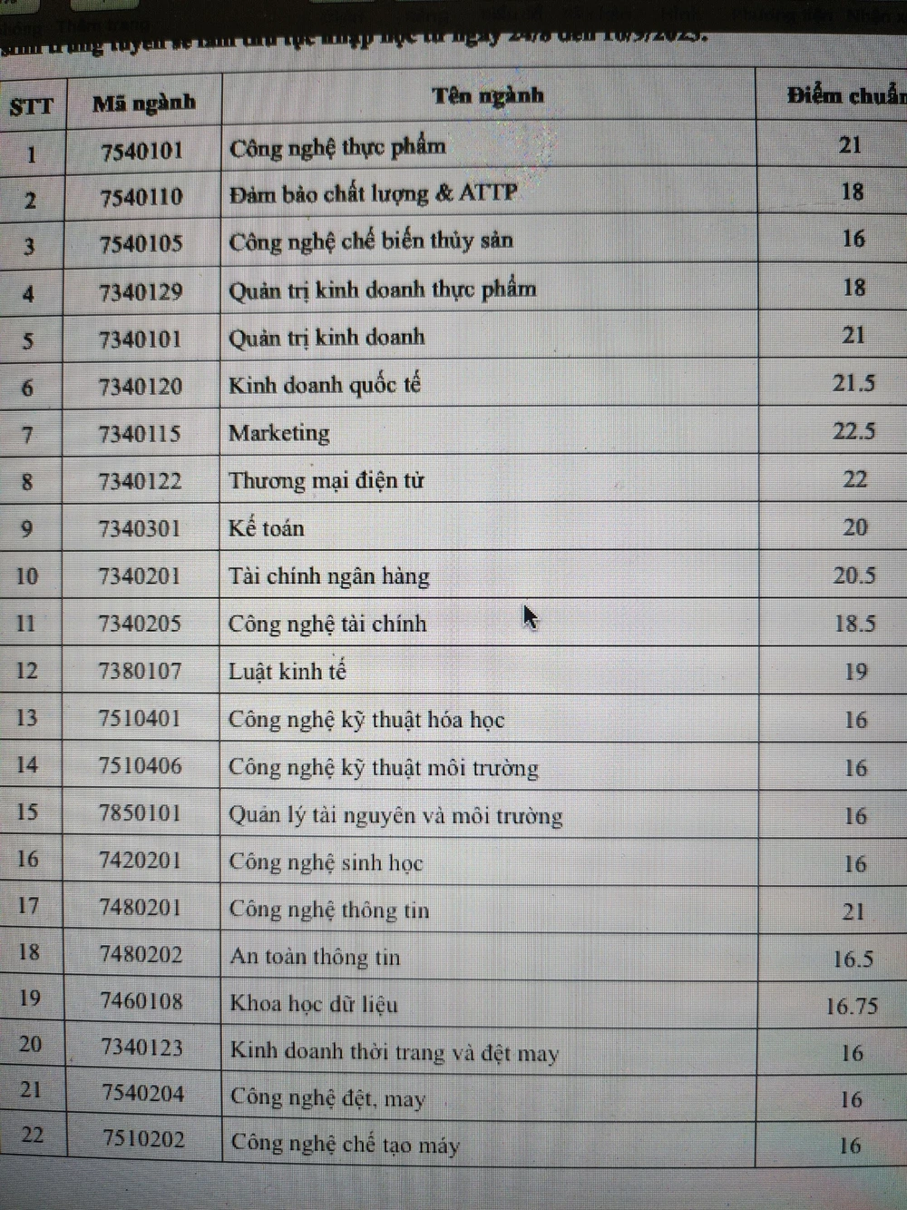Mức điểm chuẩn thấp nhất là 16, cao nhất là 22,5 điểm đối với ngành marketing