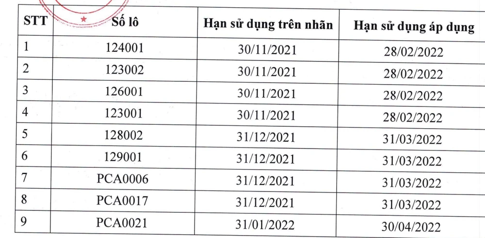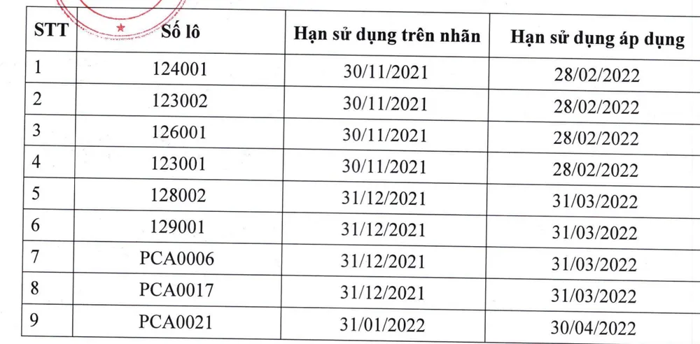 Tổng cộng có 9 lô vaccine được gia hạn sử dụng