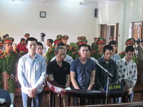 | Chín bị cáo: Lê Thanh Sang (22 tuổi, ngụ tỉnh Sóc Trăng) Ông Bình Luận (22 tuổi, quê tỉnh Sóc Trăng) Huỳnh Văn Trí (18 tuổi, quê tỉnh Kiên Giang) Nguyễn Minh Luận (19 tuổi, quê tỉnh Bến Tre) Nguyễn Văn Hoài Thương (21 tuổi, quê tỉnh Bến Tre) Huỳnh Văn Sang (19 tuổi, quê tỉnh An Giang) Trần Văn Tùng (20 tuổi, quê Thái Nguyên) Nguyễn Thanh Phong (21 tuổi, quê tỉnh Vĩnh Long) Trần Hữu Thọ (36 tuổi, quê Bình Định). |