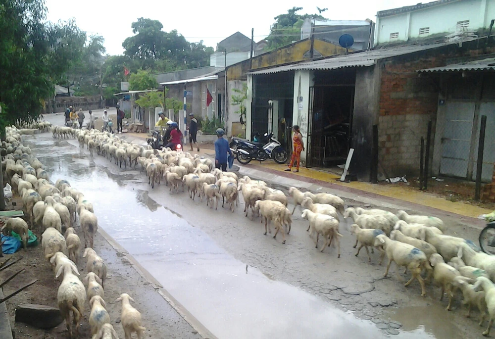 Người dân lùa cừu về nhà sau một ngày "hưởng thụ" của cơn mưa hôm trước mang lại.