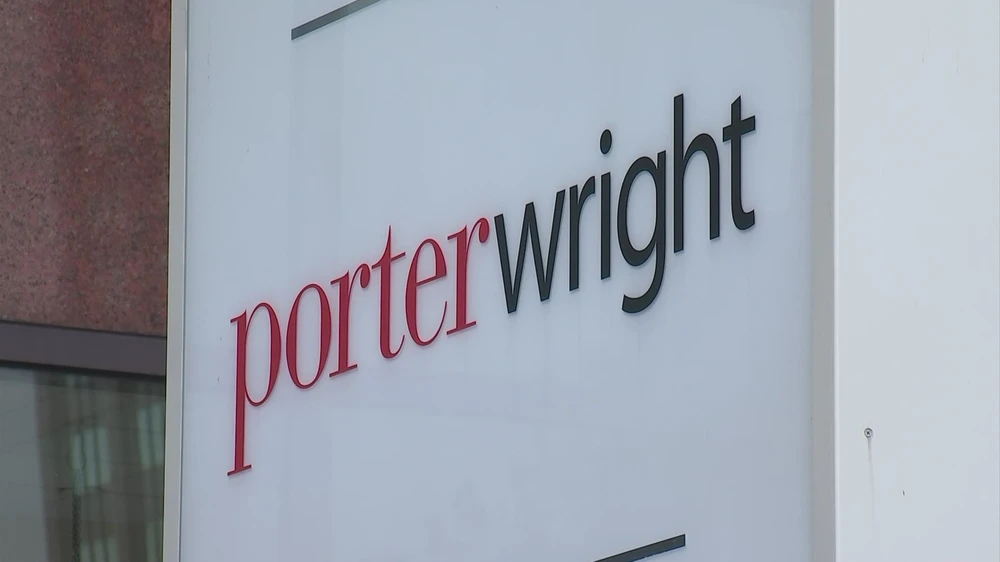 Logo công ty luật Porter Wright Morris & Arthur nằm ngoài tòa nhà trụ sở công ty này tại bang Ohio. Ảnh: REUTERS