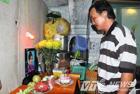 Ông Minh (bố chị Ngân) bên bàn thờ con gái. Ảnh: VTC