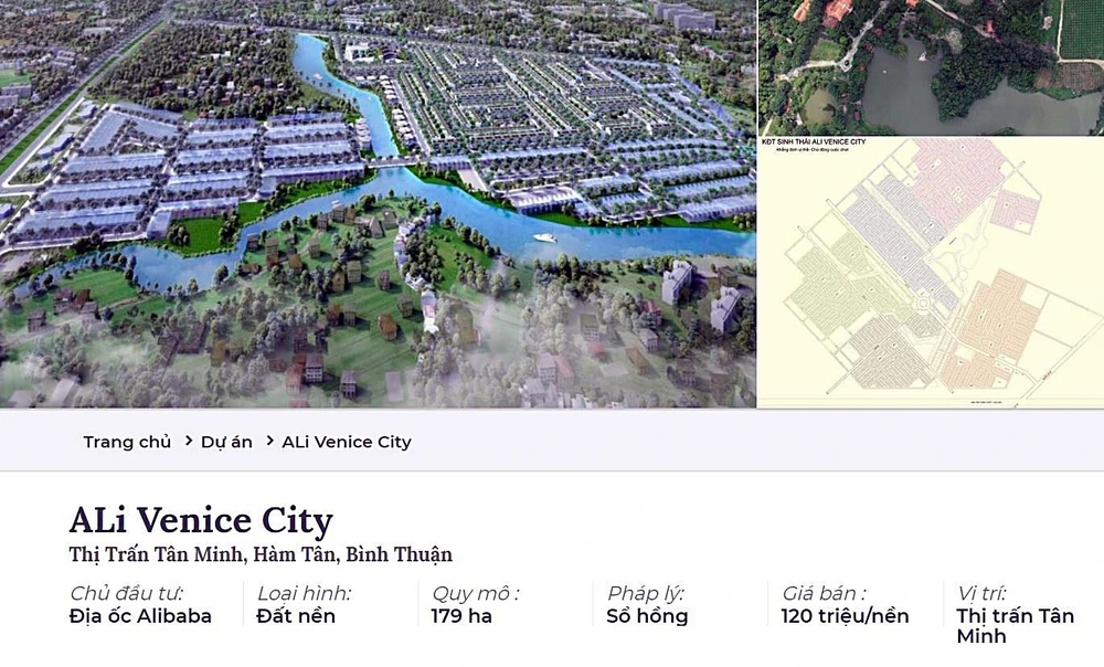 Ngày 5-7, trao đổi với PLO, bà Hồ Thị Minh Tâm, Chủ tịch UBND thị trấn Tân Minh, huyện Hàm Tân (Bình Thuận) khẳng định trên địa bàn không có dự án nào có tên gọi là Ali Venice City như Công ty Cổ phần Địa ốc Alibaba quảng cáo, rao bán.