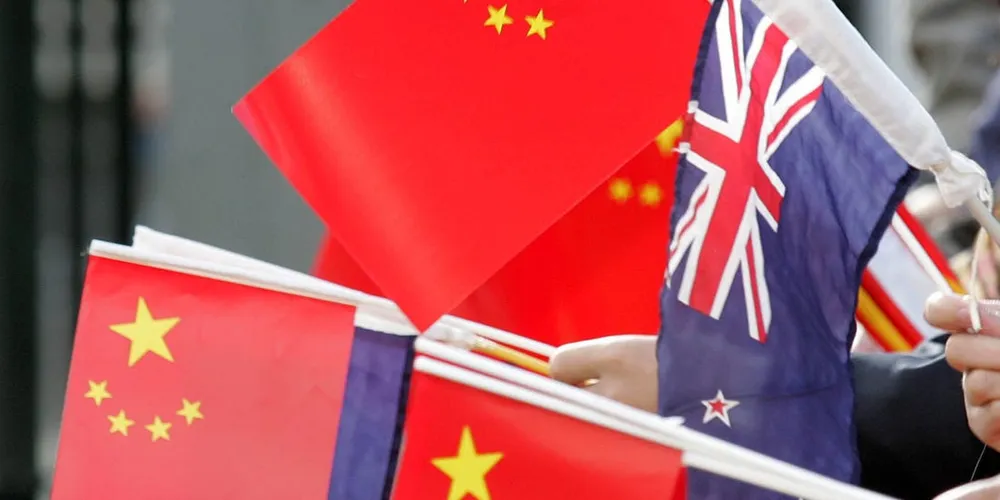 Người dân cầm cờ New Zealand và cờ Trung Quốc. Ảnh: REUTERS.