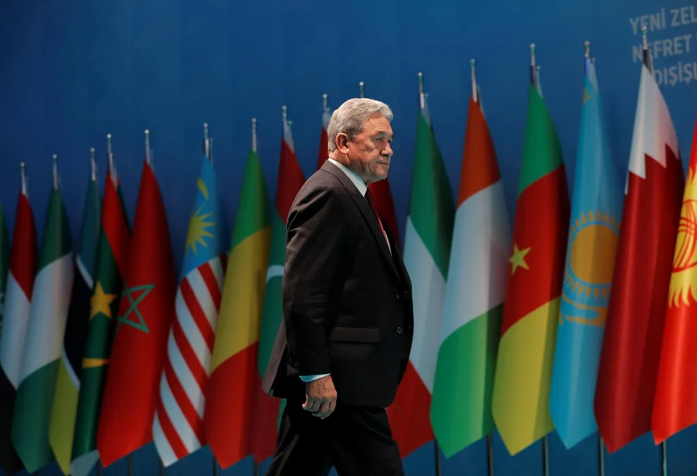Ngoại trưởng New Zealand Winston Peters đến một cuộc họp báo tại Istanbul, Thổ Nhĩ Kỳ, ngày 22-3-2019. Ảnh: REUTERS
