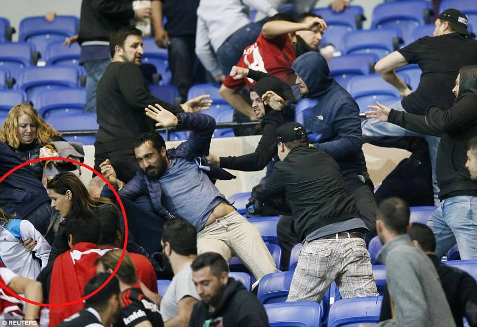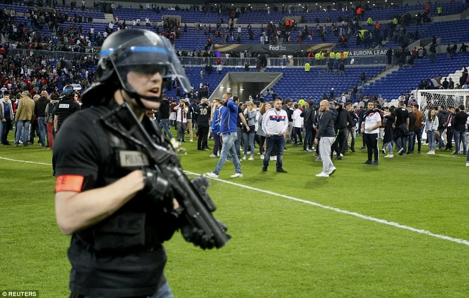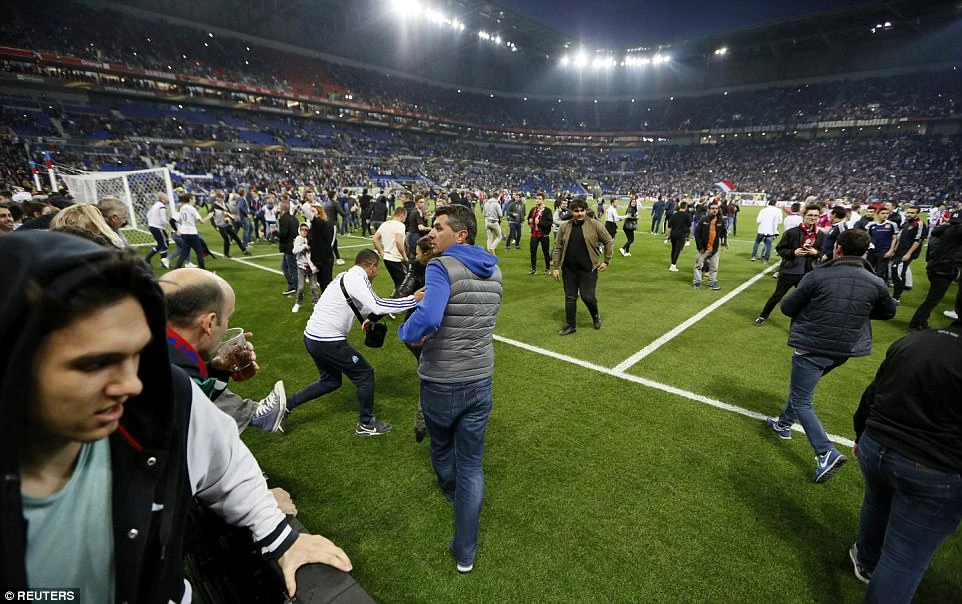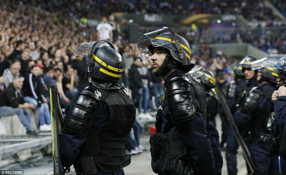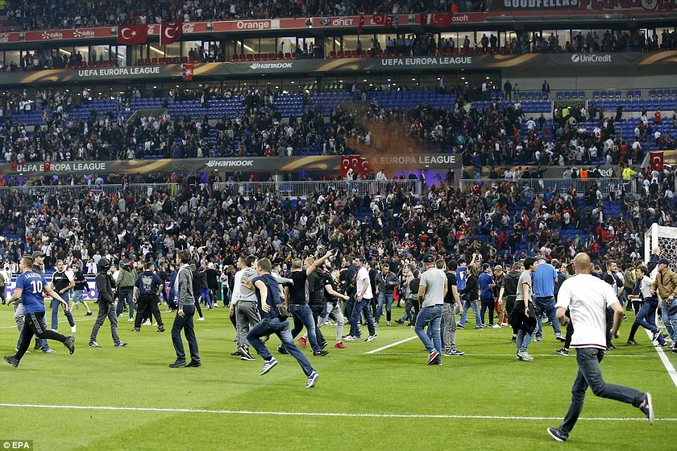 Cảnh sát chống bạo động phải dùng hơi cay và mọi biện pháp cho phép khác để vãn hồi trật tự. Trận đấu bị hoãn 46 phút mới đá lại và Lyon thắng ngược đối thủ Besiktas 2-1.