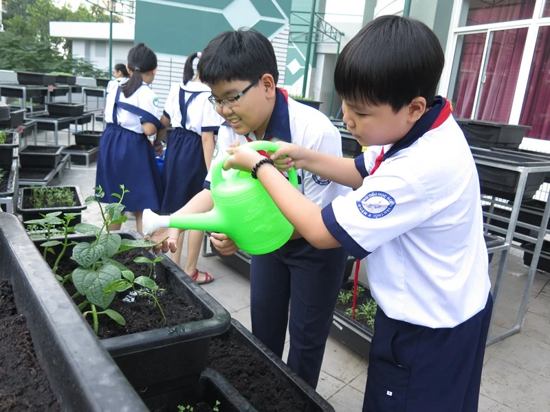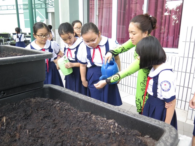 Bà Phạm Thúy Hà, Hiệu trưởng nhà trường, cho hay đây là lần đầu tiên trường trồng rau sạch này nên vừa làm vừa rút kinh nghiệm dần. Trường áp dụng mô hình này từ Trường Tiểu học Nguyễn Bỉnh Khiêm (quận 1) nhằm tận dụng khoảng trống trong trường để tạo mảng xanh và cũng để làm nơi thực hành, giáo dục học sinh cho các môn khoa học.