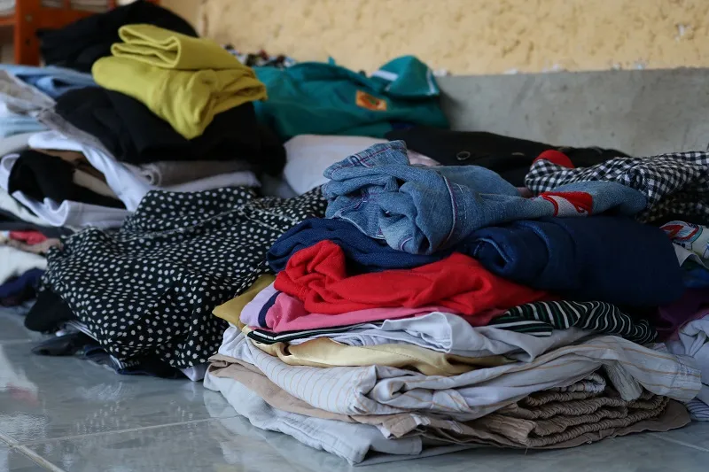 Những chồng quần áo đã được xếp ngăn nắp vào một góc của căn phòng chừng 12 m2.