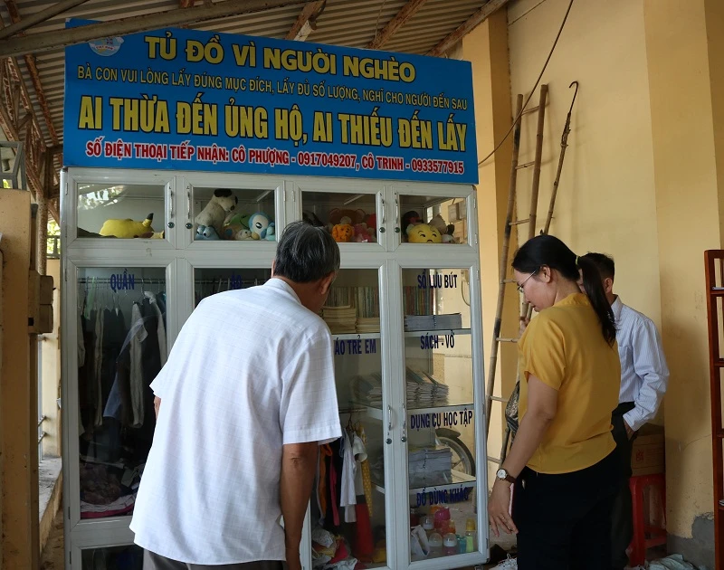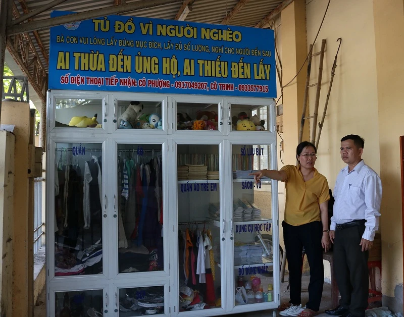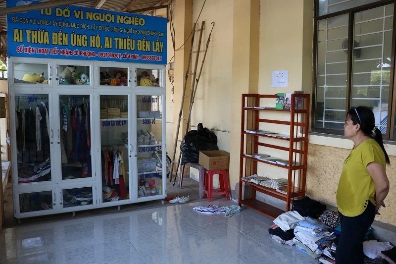 Trên tủ đồ mới, các chị trong Hội Phụ nữ đề thêm dòng chữ: “Vui lòng lấy đúng mục đích, lấy đủ số lượng, nghĩ cho người đến sau. Ai thừa đến ủng hộ, ai thiếu đến lấy”. Tủ đồ được phân thành nhiều ngăn như quần áo trẻ em, sách vở, sổ lưu bút, dụng cụ học tập, giày dép, đồ dùng khác... nhằm phục vụ cho nhiều đối tượng khác nhau. Khoảng không gian nhỏ 12 m2 còn có thêm một kệ sách nhỏ, mọi người đến đây có thể đọc sách miễn phí nếu thích.