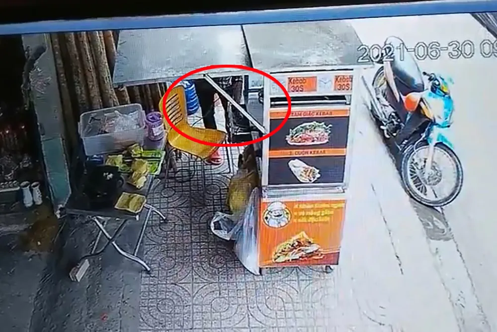 Vụ việc xảy ra vào ngày 30-6 tại trước ngôi nhà trên đường Quách Điêu (xã Vĩnh Lộc A, huyện Bình Chánh) và được camera an ninh ghi lại.