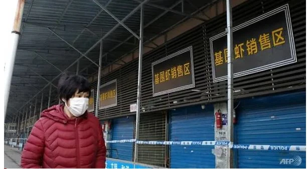 Một chợ hải sàn tại TP Vũ Hán bị đóng cửa vì nghi là nơi phát sinh nguồn bệnh. Ảnh: AFP